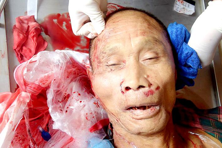 據(jù)法醫(yī)尸檢,該男子事故發(fā)生時頭戴黃色旅游帽,上身穿紅綠白相間條格襯衫,下身穿牛仔褲,年齡65歲左右,尸長1.65米左右,體態(tài)偏瘦,鼻翼左側(cè)有一黑痣,左手虎口處有疤痕(附照片)。請該男子家屬或知曉身份者見啟事后速與淮陰區(qū)交警大隊事故處理中隊董警官聯(lián)系,聯(lián)系電話:13861555199。