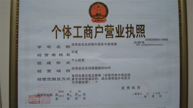 洪澤縣高澗鎮(zhèn)許斌家電維修部